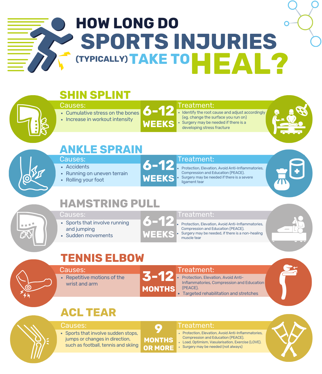 Our free infographic shows you what’s needed to make a full recovery from a soft-tissue injury.